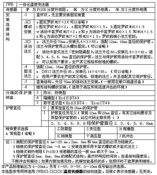 JWB一体化温度变送器是一种接触式测量温度的现场用仪表,通常与其相应的二次仪表或计算机采集测量系统配套使用,可准确测量生产工作过程中各种介质或物体的温度(使用范围 -200℃ ~ 1600℃)。