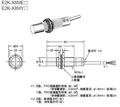 型号:E2K-X8ME1 2M圆柱型接近开关