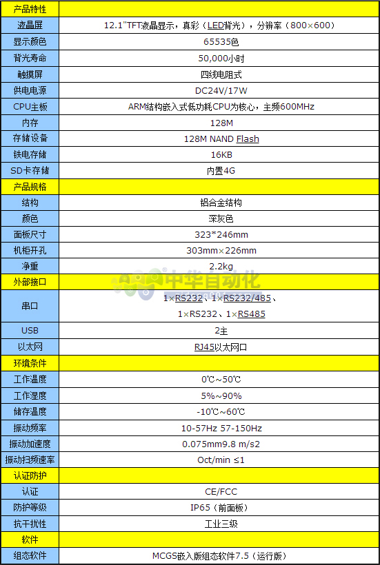 参数:输入电压:DC24(V) 显示器尺寸:12.1(寸) 存储器:128M FLASH SD卡储存:内置4G 显示色彩:真彩65535色